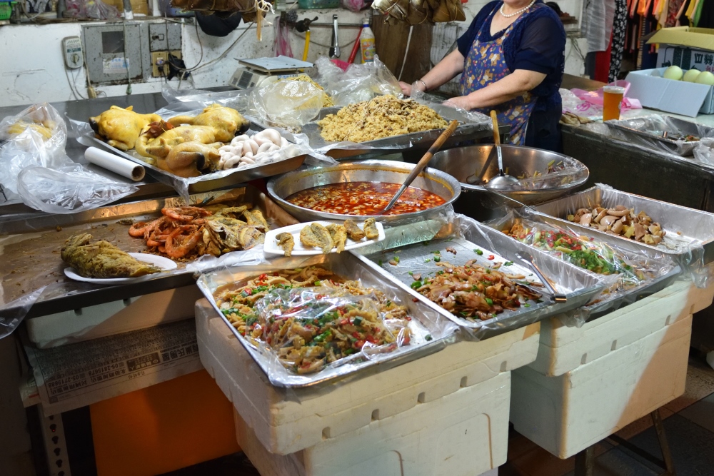 As we continued to walk around, we ended up exploring an outdoor grocery selling fresh local ingredients, which was packed full of regular patrons! There was a lot of seafood and freshly cooked meals for shoppers to buy.